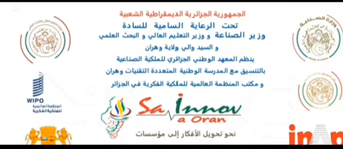 À l’occasion de l’organisation du Salon de l’Innovation par l’Institut National Algérien de la Propriété Industrielle, nous avons le plaisir d’annoncer le lancement des activités de cet important événement, qui se tiendra à l’École Polytechnique d’Oran durant les journées des 7, 8 et 9 décembre.